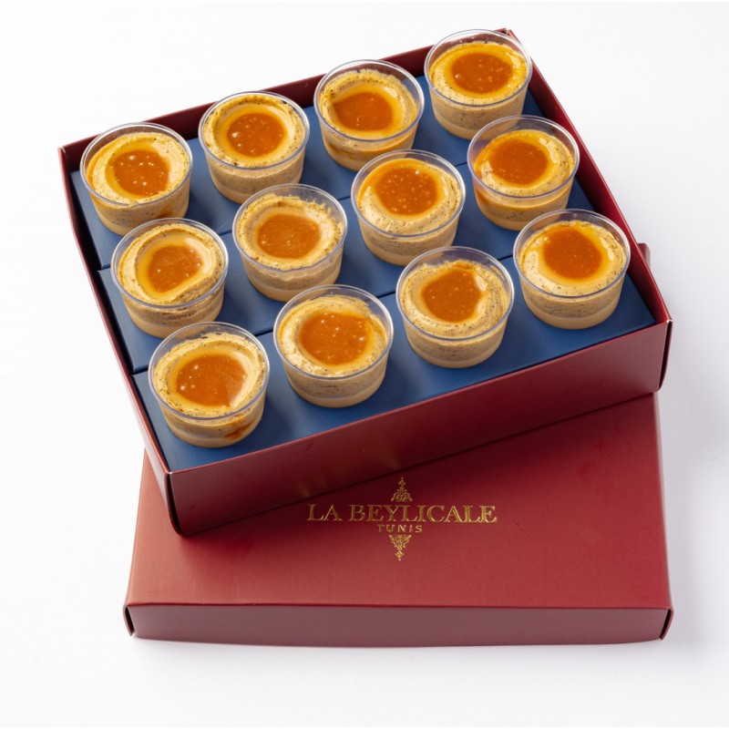 Ce dessert séduit par l’harmonie parfaite de ses saveurs : une génoise imbibée de café surmontée d’un biscuit au beurre salé, à la fois croustillant et gourmand. Une crème légère au caramel et une crème onctueuse au café dévoilent un équilibre subtil entre douceur et intensité, le tout sublimé par un voile de caramel pour une touche de gourmandise supplémentaire.