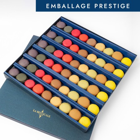 54x Macaron : 6x Pistache, 6xNessri, 6x Amber, 6x Chocolat , 6x Fruits Rouge , 6x Noisettes, 6x Hibiscus Rose, 6xViolette, 6xZgougou
