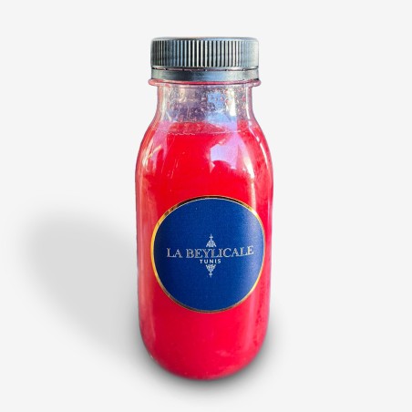 Une explosion de fruits rouges alliant la douceur sucrée de la fraise, l’intensité de la framboise et la rondeur gourmande de la cerise. Un jus riche en saveurs, à la fois vif, fruité et délicieusement réconfortant.