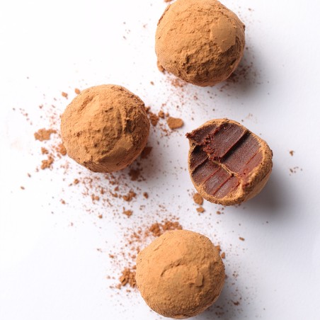 Enrobées d'un chocolat riche et raffiné, ces truffes Valrhona dévoilent un cœur fondant et une saveur intense. Un véritable moment de gourmandise, où la qualité du chocolat Valrhona s’exprime dans toute sa splendeur.