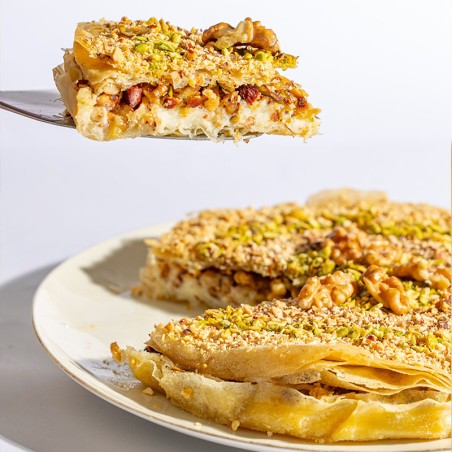 Un délicieux mélange de fruits secs, associé à une crème légère et onctueuse, enveloppé dans une pâte dorée et parfumée. Chaque bouchée offre une harmonie parfaite de textures et de saveurs pour un véritable moment de gourmandise.