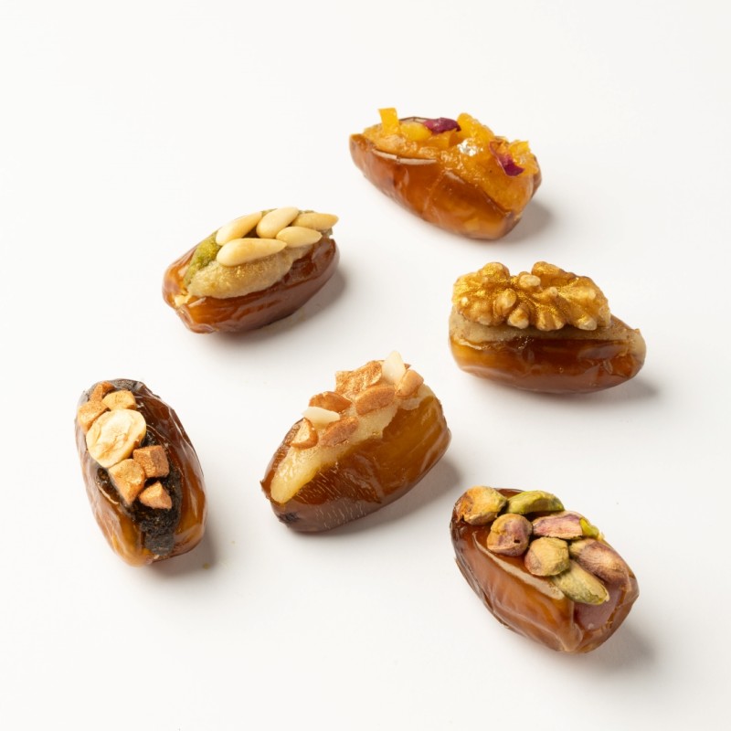 2 x Datte Farcie : 1 x Pistache et Pignon, 1 x Framboise et Pistache